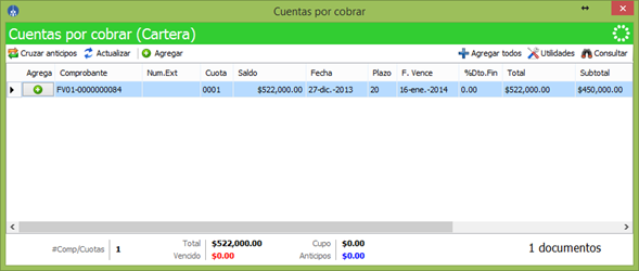 En la parte inferior se muestran los comprobantes que el cliente no ha cancelado completamente. Ver figura 53.